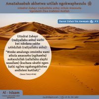 Ubuqhawe BaHadrat Zubayr (radiyallahu anhu) Ngosuku lwempi yaseYarmook, amaSahaabah (radiyallahu anhum) athi kuHadrat Zubayr (radiyallahu anhu), “Kungani ungangeni ngokuphelele uhlasele isitha kubese thina silandele wena ngokuhlasela?” UHadrat Zubayr (radiyallahu anhu) wase ephendula ethi, “Ngiyazi ukuthi uma ngingena ngibahlasela, nina ngeke nize ningilandele.” AmaSahaabah (radiyallahu anhum) aphendula athi, “Cha, thina sizokulandela.” …