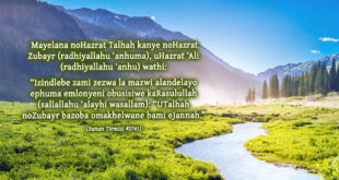 UHazrat Talhah (radhiyallahu ‘anhu) eMpini yase-Uhud UHazrat Zubayr bin Awwaam (radhiyallahu ‘anhu) ubika ukuthi ngesikhathi seUhud, uHazrat Rasulullah (sallallahu ‘alayhi wasallam) wayegqoke izikhali ezimbili. Ngesikhathi sempi, uHazrat Rasulullah (sallallahu ‘alayhi wasallam) wayehlose ukugibela etsheni kodwa ngenxa yesisindo sezikhali ezimbili, akakwazanga ukwenza lokho. Ngakho-ke wacela uHazrat Talhah (radhiyallahu ‘anhu) ukuthi ahlale …