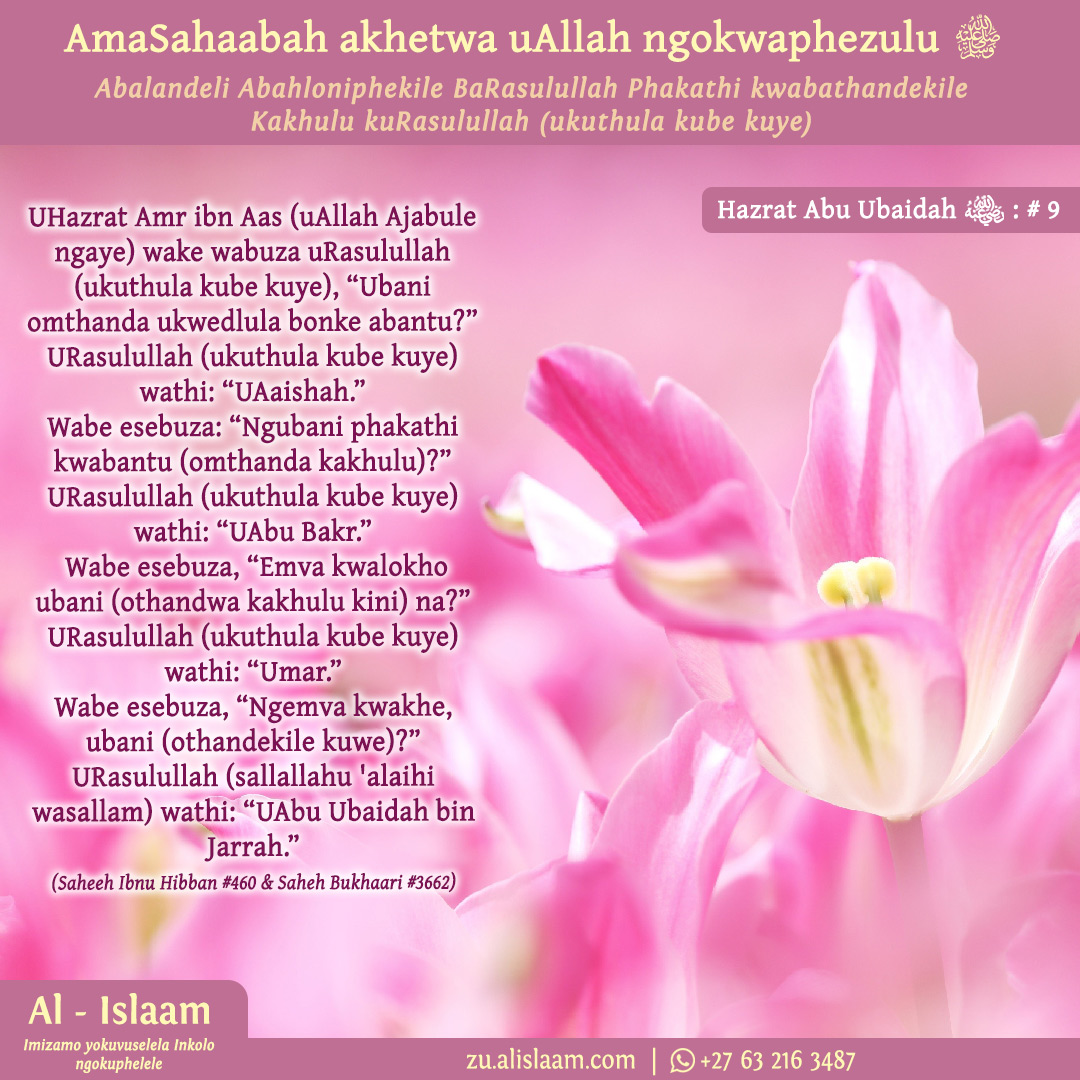 UNabi (sallallahu ‘alayhi wasallam) wathi kuye, “Abu Ubaydah ,’ phuza! (kuqala):” UHazrat Abu Ubaydah (radhiyallahu anhu) wabe esemukela isitsha kuNabi (sallallahu ‘alayhi wasallam).